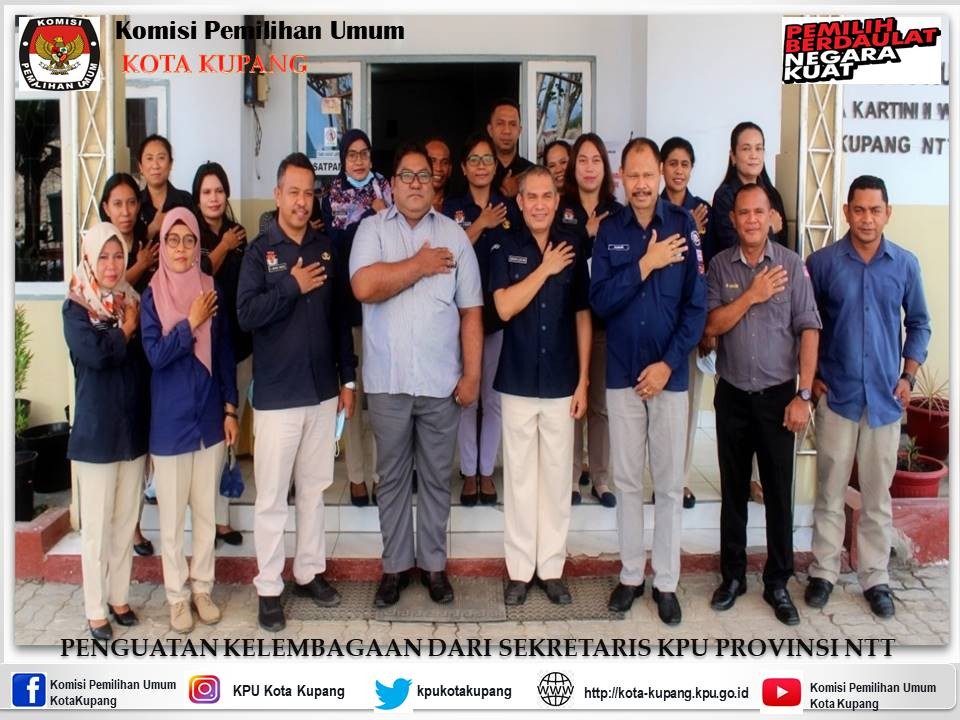 Selasa, 07 September 2021 Sekretaris KPU Provinsi NTT Bapak Kusmanto R. Djo Naga, M.Si. didampingi Kepala Bagian Program Data dan SDM KPU Provinsi NTT Bapak Agustinus Y. Ola Paun, Kasubbag Hukum dan Kaubbag SDM Provinsi NTT berkesempatan melakukan kunjungan ke KPU Kota Kupang. Rombongan tiba jam 08.00 wita disambut Ketua KPU Kota Kupang Deky Ballo, Plt. Sekretaris KPU Kota Kupang, Kasubag Teknis. langsung meninjau ruangan Rapat Aula Kota Kupang yang rusak bagian atap akibat bencana badai Seroja pada bulan april lalu yang telah direnovasi. Kemudian beliau menyempatkan diri menuju ruangan Rumah Pintar Pemilu (RPP). Tujuan dari kunjungan ini adalah sebagai bentuk dari Penguatan Kelembagaan di lingkup KPU yang add di Provinsi NTT.