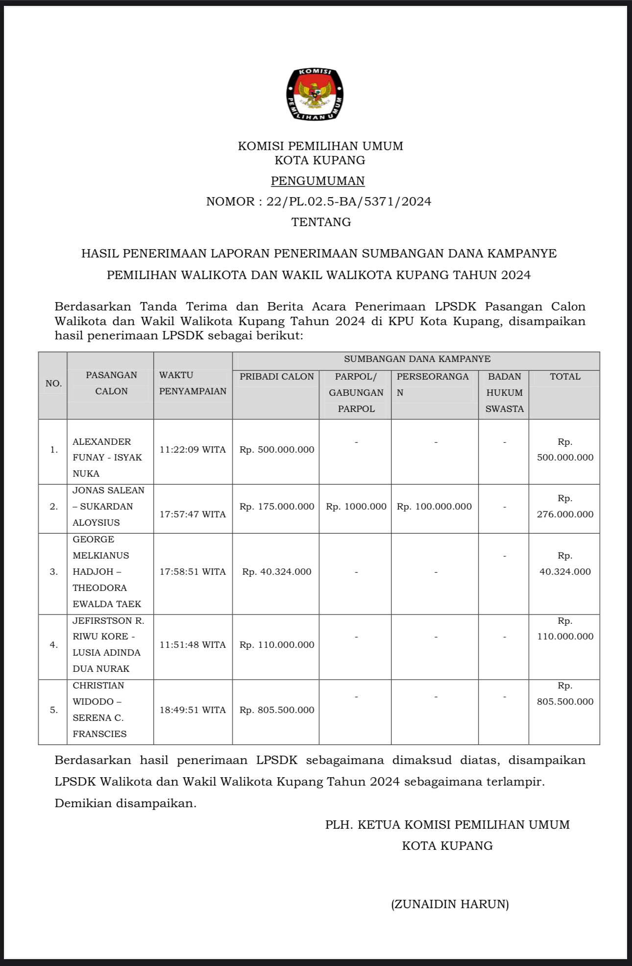 Laporan LPSDK Pemilihan Walikota dan Wakil Walikota Kupang Tahun 2024