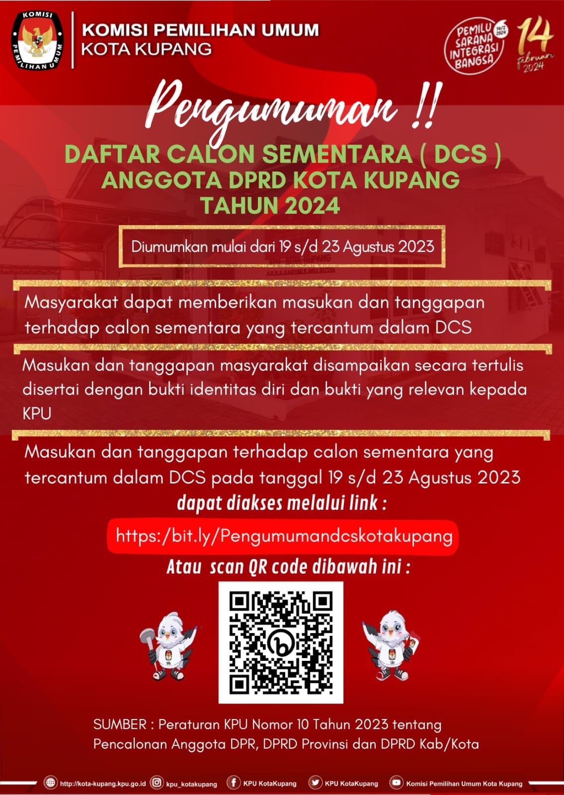PENGUMUMAN DCS ANGGOTA DPRD KOTA KUPANG PADA PEMILU TAHUN 2024