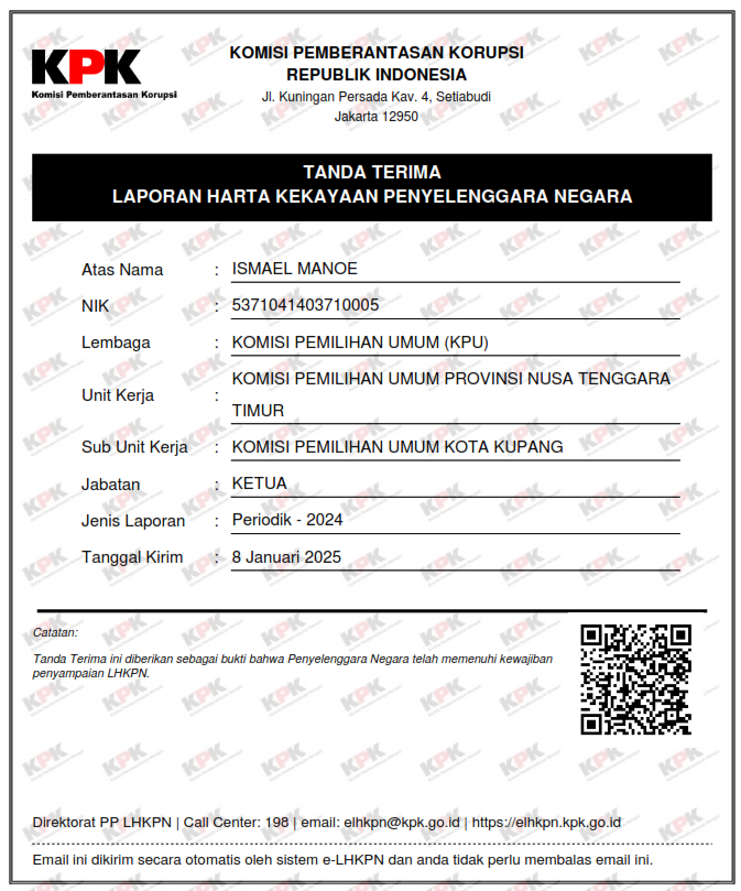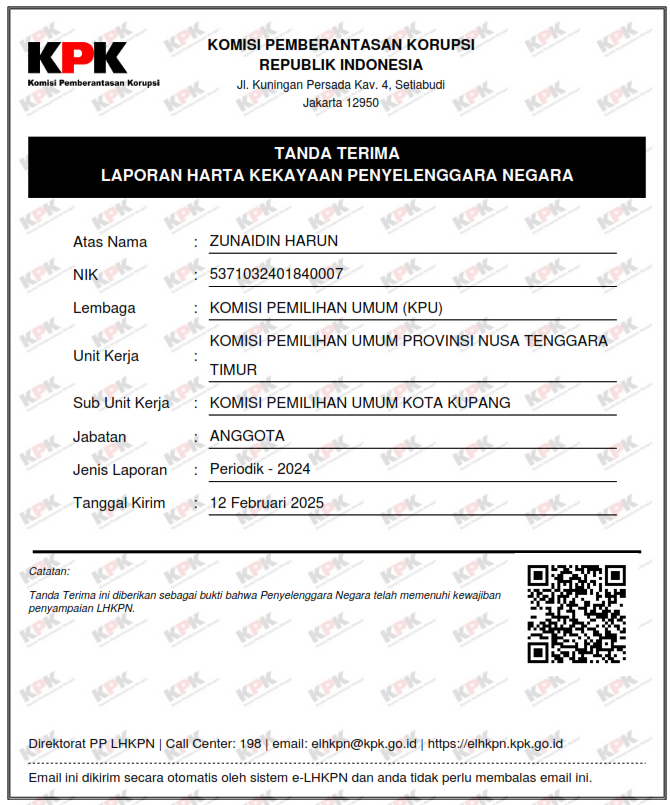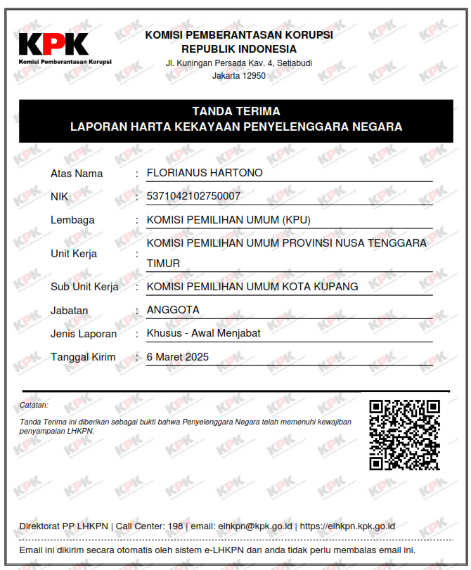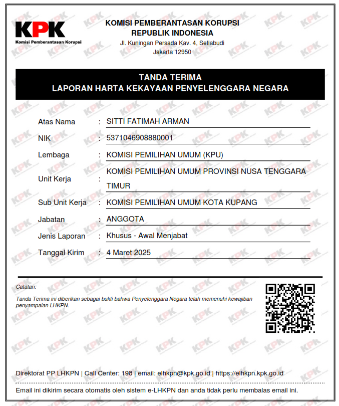 Laporan Harta Kekayaan Penyelenggara Negara (LHKPN) ANGGOTA KPU KOTA KUPANG