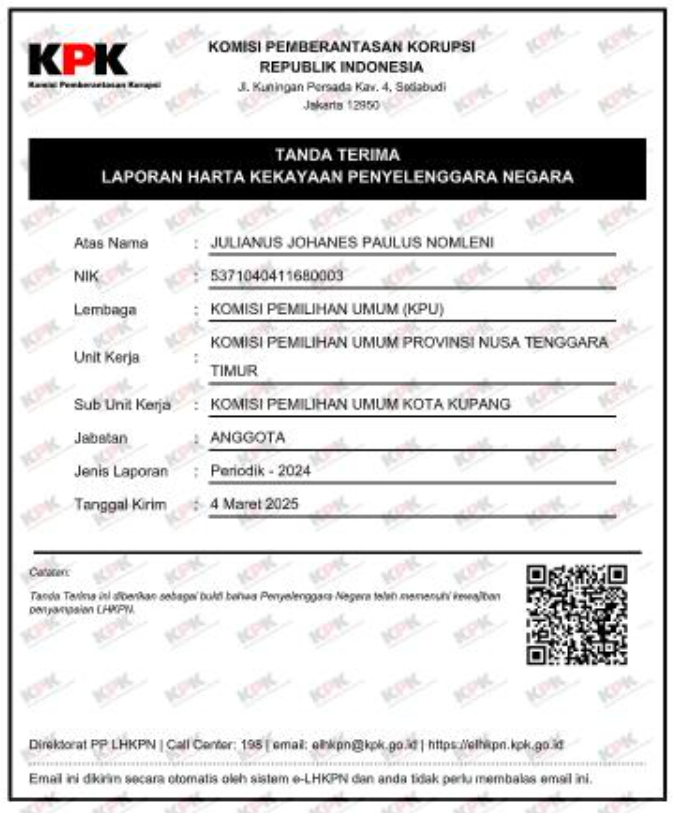 File dapat diunduh pada link berikut ini LHKPN JULIANUS J. P. NOMLENI