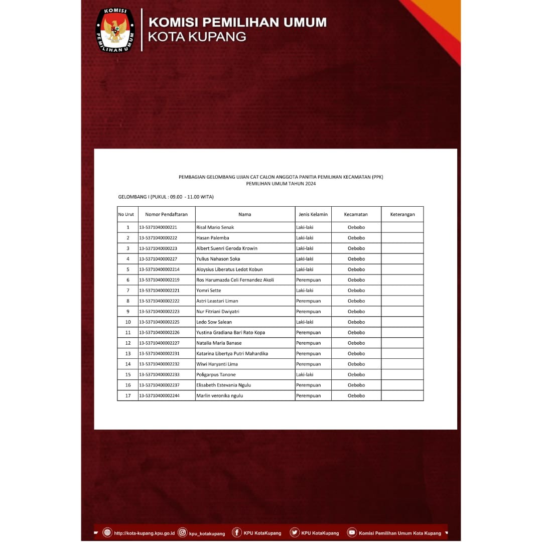 Pembagian Gelombang Ujian CAT Calon Anggota Panitia Pemilihan Kecamatan (PPK) Untuk Pemilihan Umum 2024