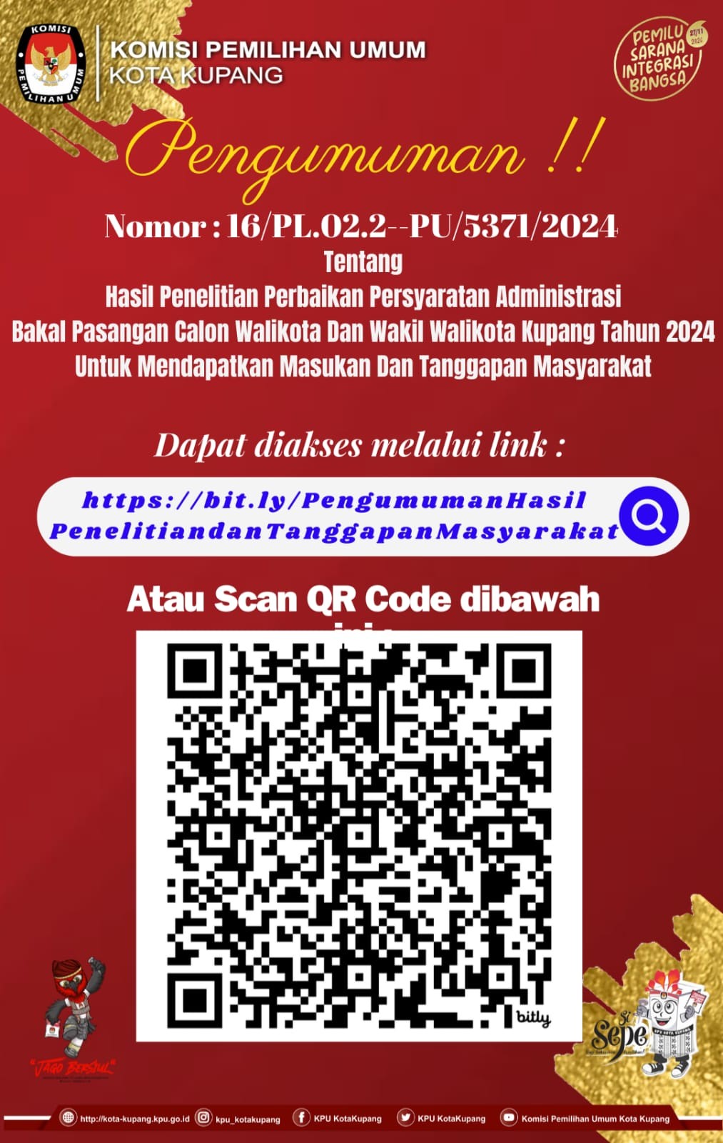 PENGUMUMAN NOMOR : 16/PL.02.2-PU/5371/2024